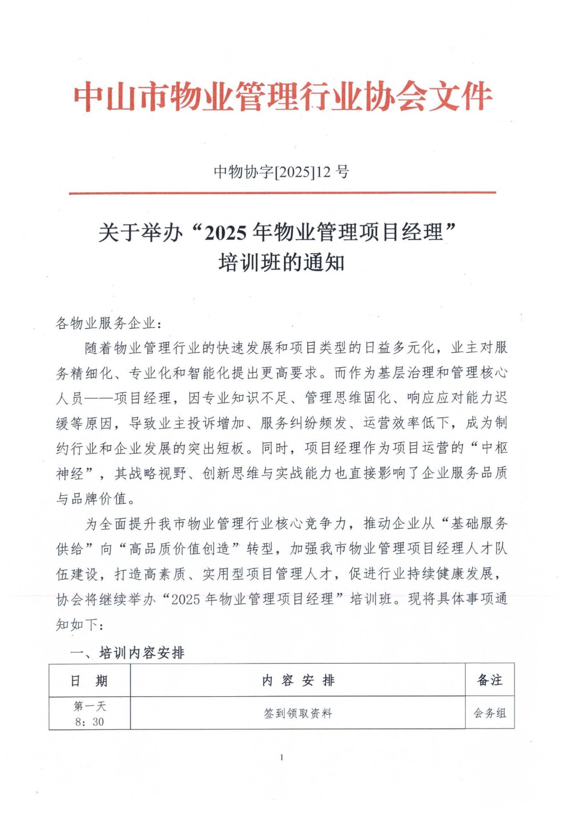 关于举办“2025年物业管理项目经理”培训班的通知.doc